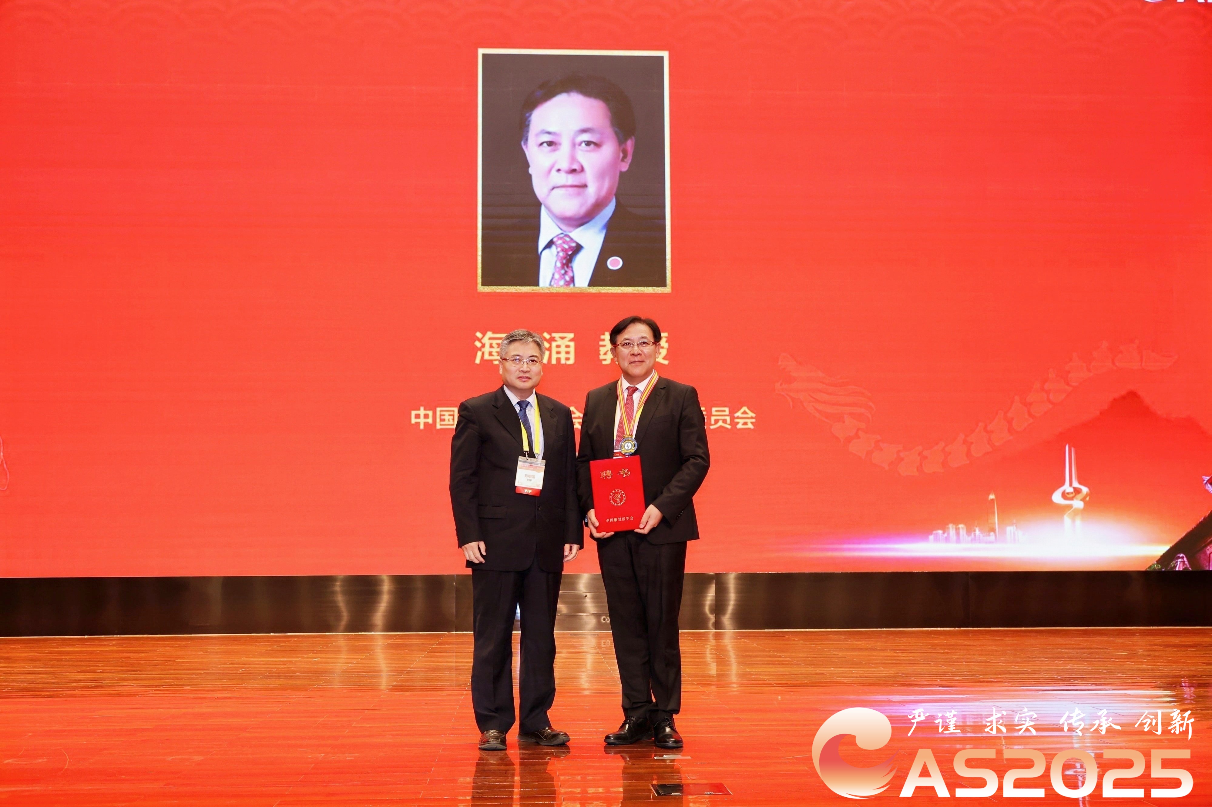 中国康复医学会脊柱专业委员会取得的各项成就,凝聚了一代代脊柱领域专家的智慧与奉献。开幕式上,彭明强书记向为专委会发展作出卓越贡献的前任主任委员侯树勋教授、刘忠军教授和邱勇教授表达了崇高敬意,并向三位德高望重的教授颁发了纪念牌与胸徽。同时,为第九届脊柱专业委员会主任委员、首都医科大学附属北京朝阳医院海涌教授颁发了聘书。