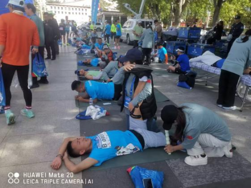 活动中,专家团队在布达拉宫广场赛事终点及周边指定区域设立临时赛后康复恢复区,实施“移动医疗+固定站点+康复服务”三位一体保障,为400余名参赛运动员及工作人员提供了伤情处理与咨询服务。