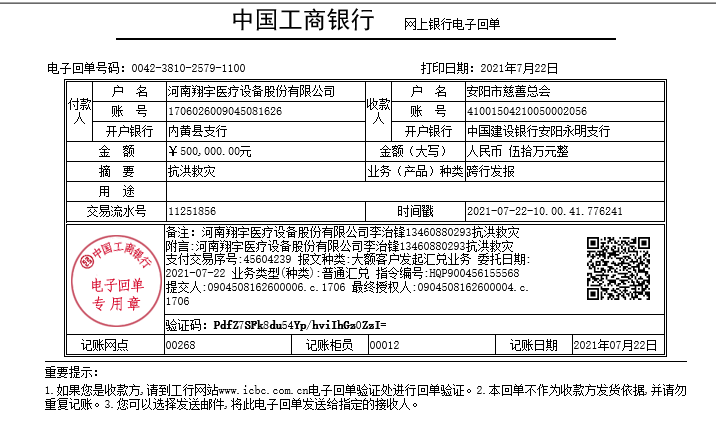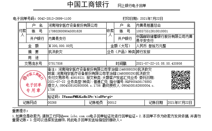 洪灾无情,风雨同舟——中国康复医学会高级单位会员翔宇医疗向灾区捐款捐物100万元