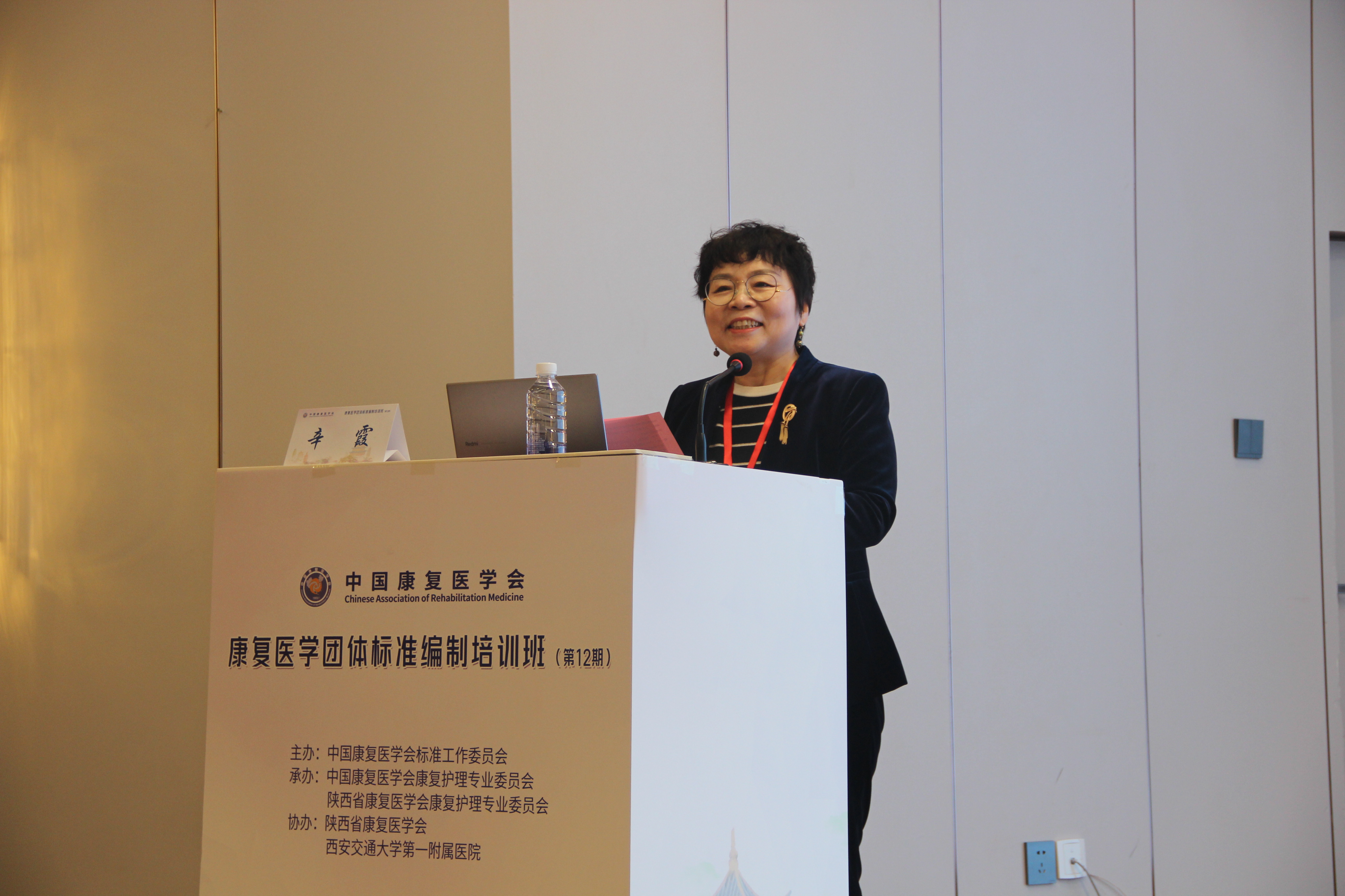 培训班开幕式由中国康复医学会康复护理专业委员会主任委员辛霞教授主持。中国康复医学会副会长兼标准工作委员会主任委员燕铁斌、陕西省康复医学会会长张巧俊、西安交通大学第一附属医院副院长张谞丰等领导出席开幕式并致辞。