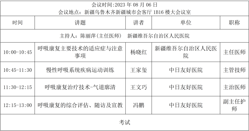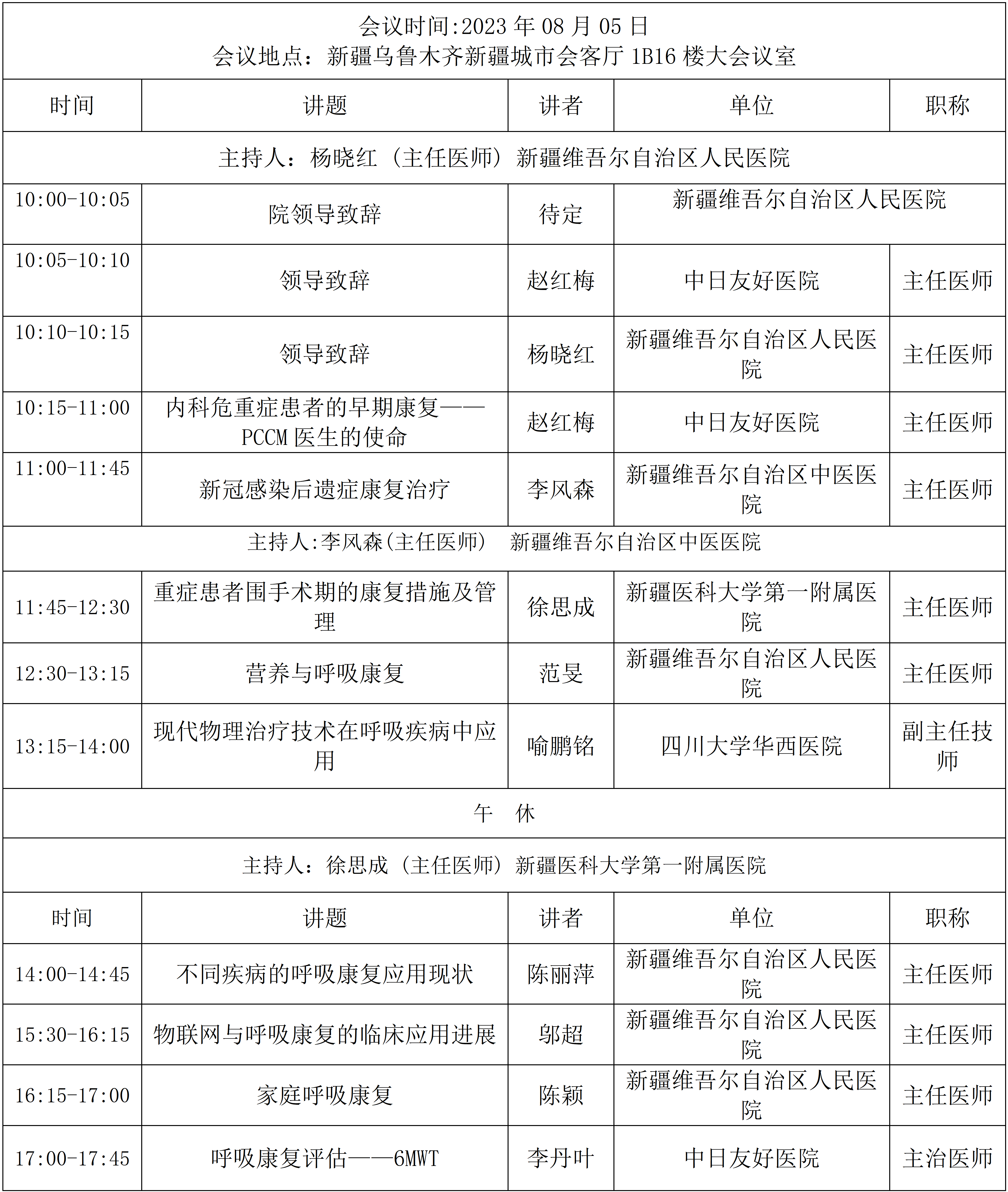 第十五期呼吸康复适宜培训班(乌鲁木齐站)--会议日程