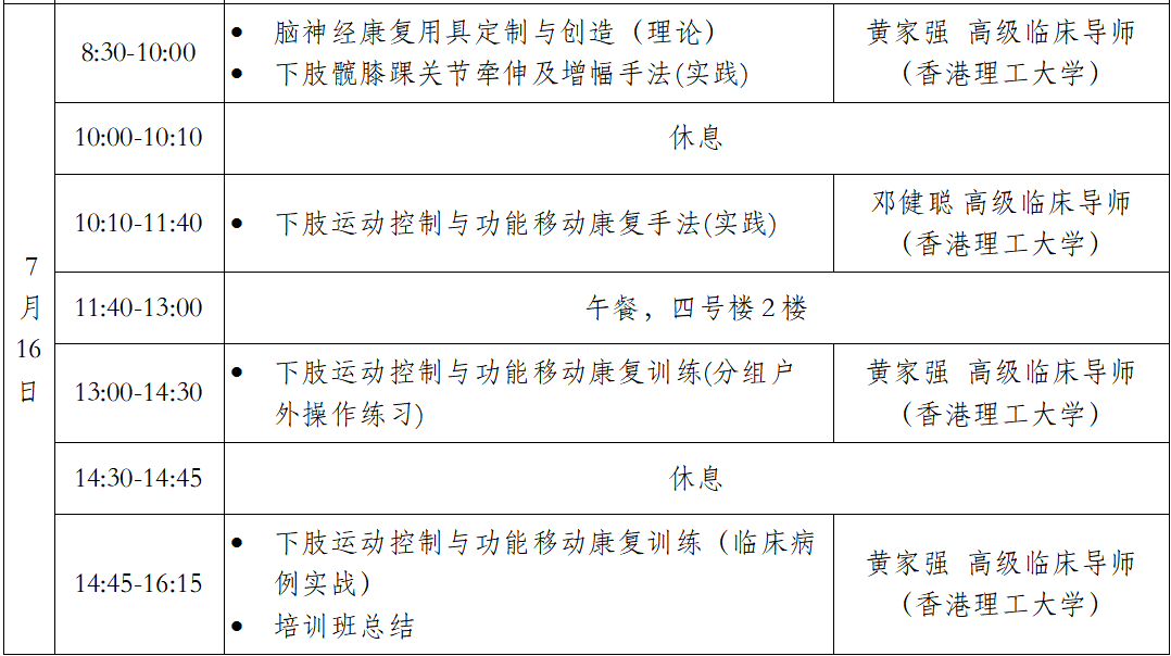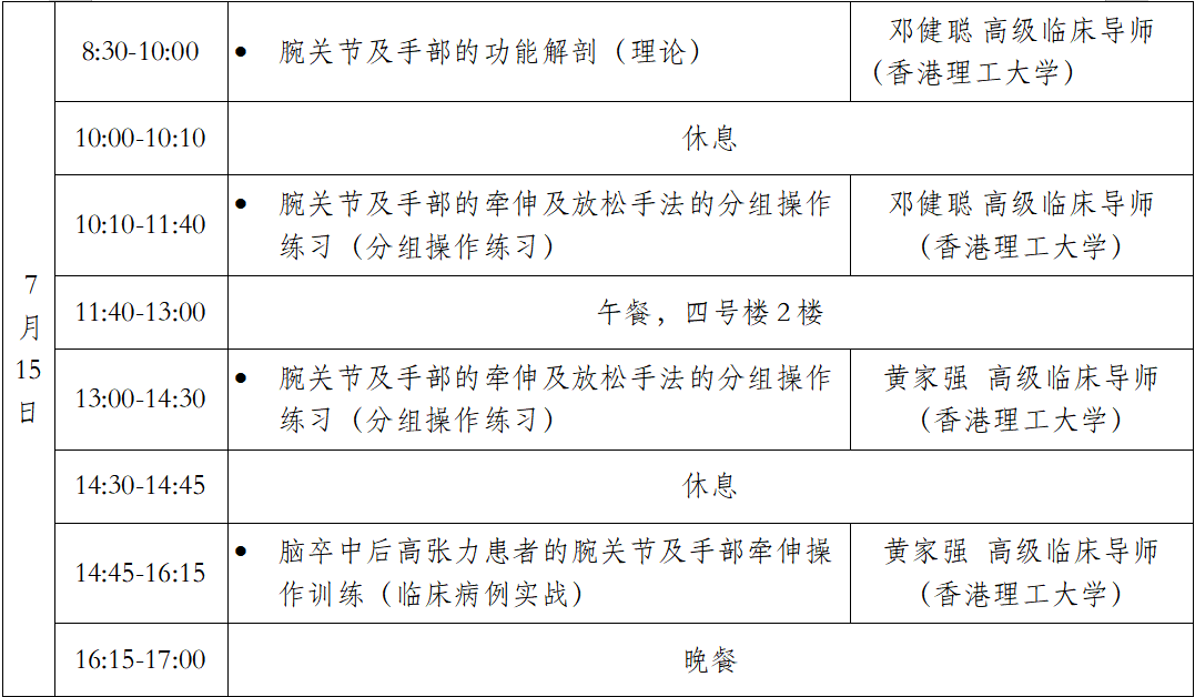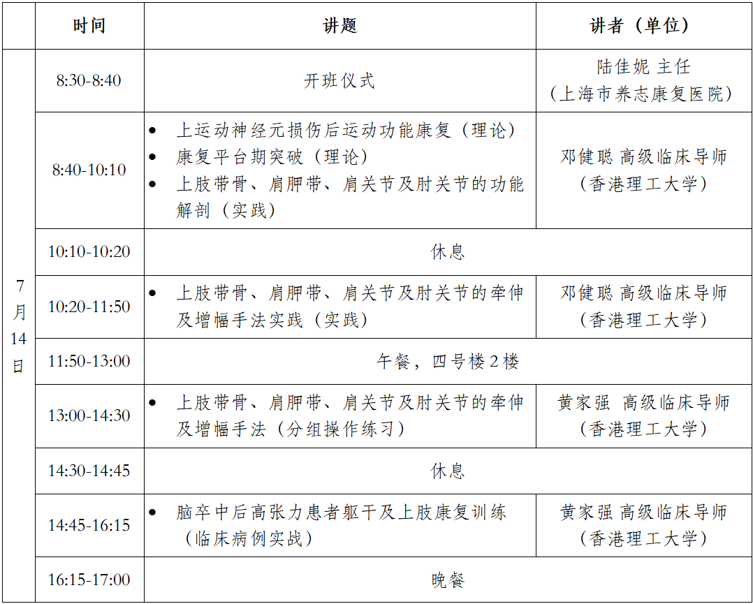 地点:上海市养志康复医院 时间:2023年7月14-16日