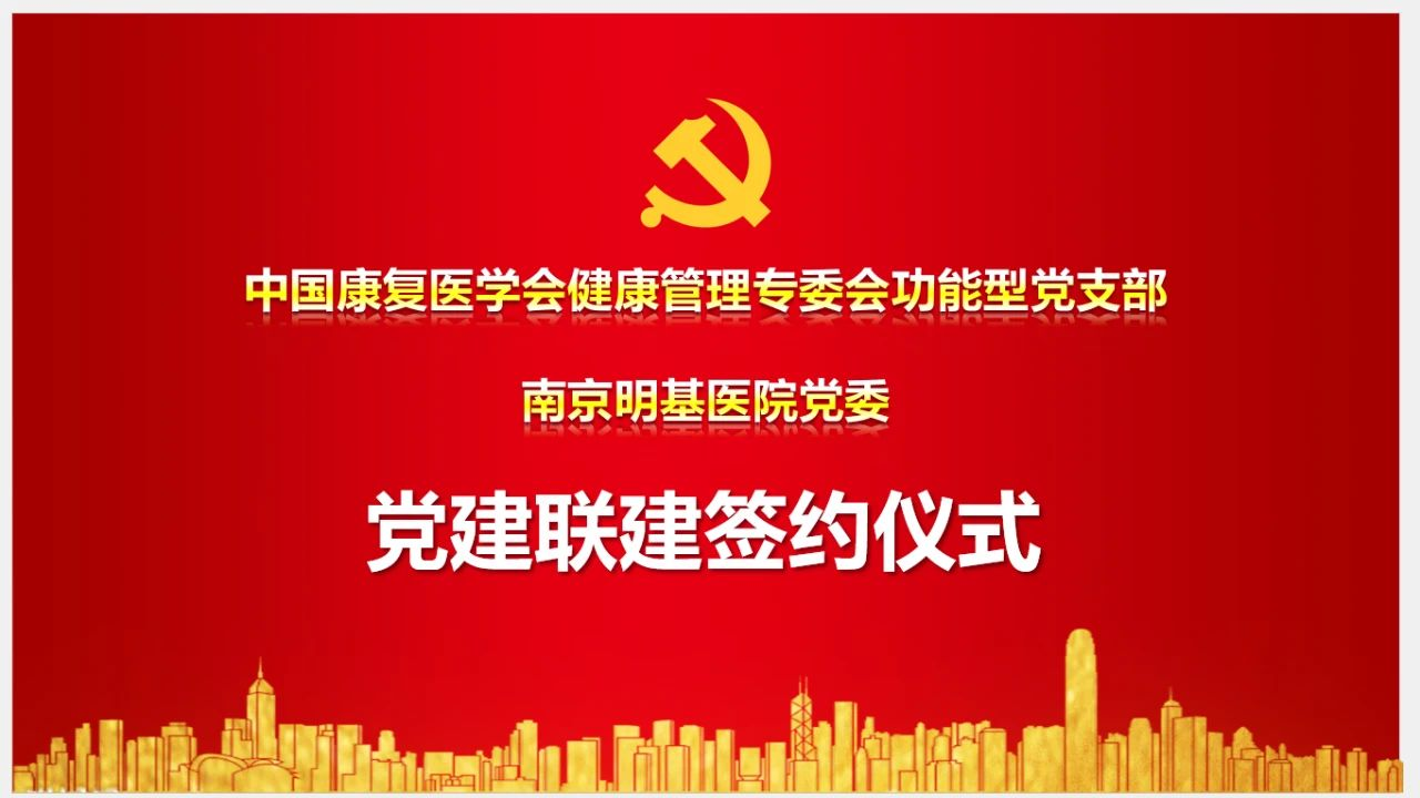 费哲为主委代表中国康复医学会健康管理专委会功能型党支部与南京明基医院党委书记李东进行党建联建签约奋进新征程、共筑健康梦,相信在中国康复医学会的引领下,健康管理专委会的党建引领、学术推动、专业发展、科技志愿服务工作取得更加显著的成就,谱写我国卫生健康事业发展的新篇章。