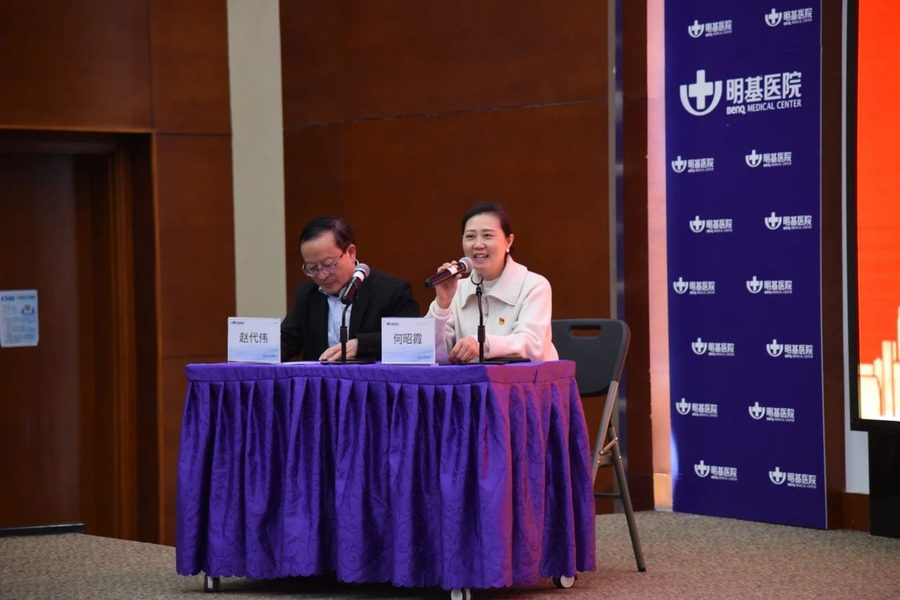 孙锟名誉主委、费哲为主委一行还实地参访调研了南京医科大学附属明基医院,深入了解医院医疗、教学、科研等开展情况,并开展座谈交流。南京医科大学附属明基医院于振坤院长;李东书记;副院长罗翠凌、王汉东、潘奎静、陈明祥;凌颖洁副书记等陪同。学术会议在南京明基医院第一国际会议厅举行,由党委副书记凌颖洁主持。我院中层领导干部、党员、职工代表两百余人参会。