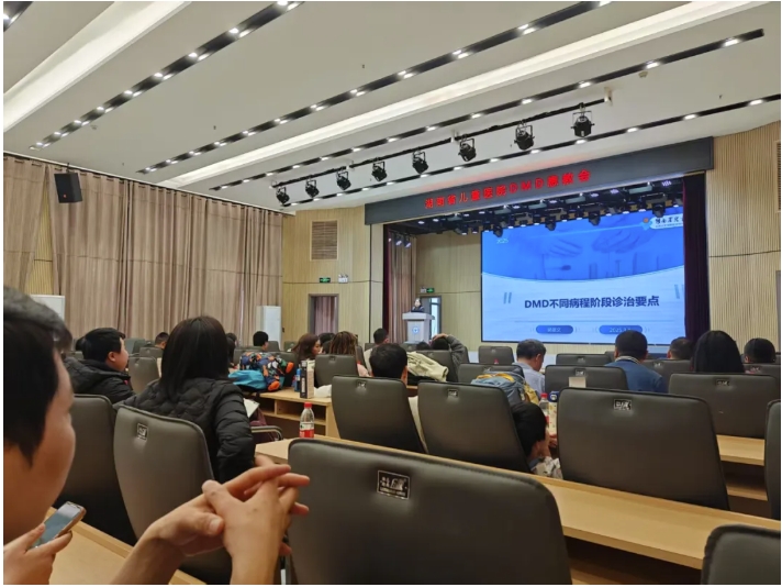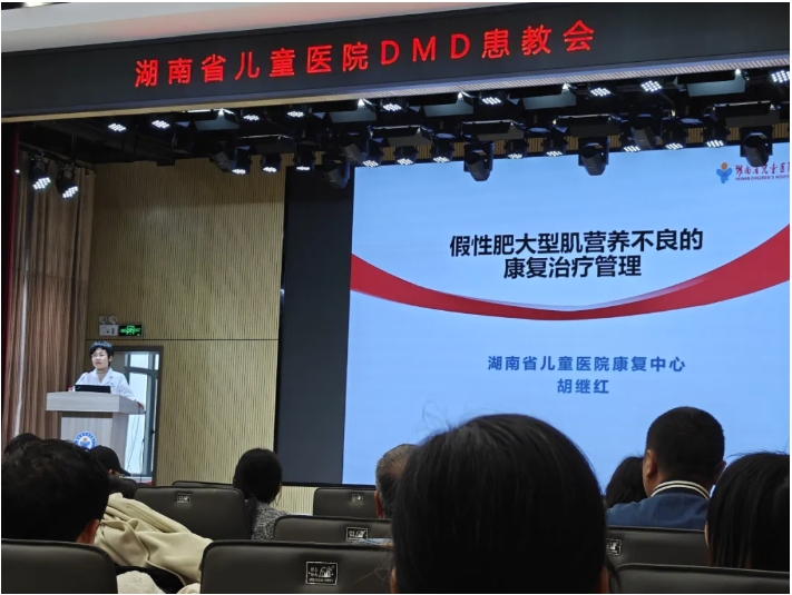 在讲座中首先是吴丽文教授详细介绍了DMD的发病机制,其是一种X染色体隐性遗传致死性的神经肌肉疾病,主要影响男性,其抗肌萎缩蛋白基因突变引发肌肉细胞中抗肌萎缩蛋白缺失或功能异常,进而使肌肉纤维呈进行性破坏和萎缩。这一疾病多在患儿3 - 5岁时发病,初期症状常表现为运动发育迟缓,如学步较晚、行走缓慢、易跌倒等,随着病情进展,导致上楼困难、蹲起费力,12岁左右丧失步行能力,随后累及上肢至并伴有呼吸功能、心脏功能的严重下降从而危及患者生命。 在康复治疗与管理方面,胡继红教授指出,虽然目前DMD无法完全治愈,但综合治疗能有效延缓病情发展,康复治疗不可或缺,通过早期预防性的牵伸治疗、矫形器具干预、避免过度训练和劳累情况下进行如游泳、骑脚踏车等特定类型及时间的功能锻炼,帮助患者维持关节活动范围、增强肌肉力量与耐力,提升日常生活能力,延长其独立生活的时间。胡教授指出在疾病的早期呼吸肌力量的训练对延缓病情后期呼吸衰竭的出现也有积极作用,其还强调多学科协作的重要性,DMD涉及神经、肌肉、心脏、呼吸、消化等多个系统,需要多学科共同制定个性化治疗方案。 活动现场还邀请了部分患者家属进行经验分享,从用药经验、康复训练细节、心理建设等方面与在场的患者家属分享。 活动的最后还有专家答疑环节,患者家属就药物副作用、康复训练细节、心理疏导等问题与专家进行深入交流。专家们耐心细致地解答,给予专业建议,让家属们受益匪浅。一位患者家长表示:“参加这次活动,让我对孩子的病有了更清晰的认识,也学到了很多实用的康复治疗和护理知识,心里更有底了。” 此次DMD疾病讲座的成功举办,不仅为为DMD的孩子们进行康复指导,也让更多人了解到DMD这一罕见病,唤起了社会对罕见病群体的关注与关爱。未来,希望通过更多类似的活动,为DMD患者及其家庭带来更多支持与帮助,共同为他们点亮生命的希望之光。
