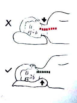 头略呈后仰姿势,侧卧时,头颈呈一条直线。