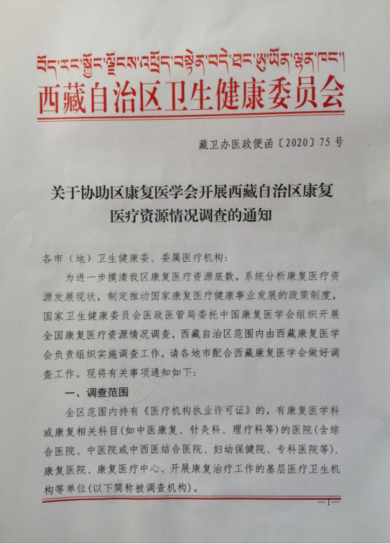 (西藏自治区)关于协助区康复医学会开展西藏自治区康复医疗资源情况调查的通知