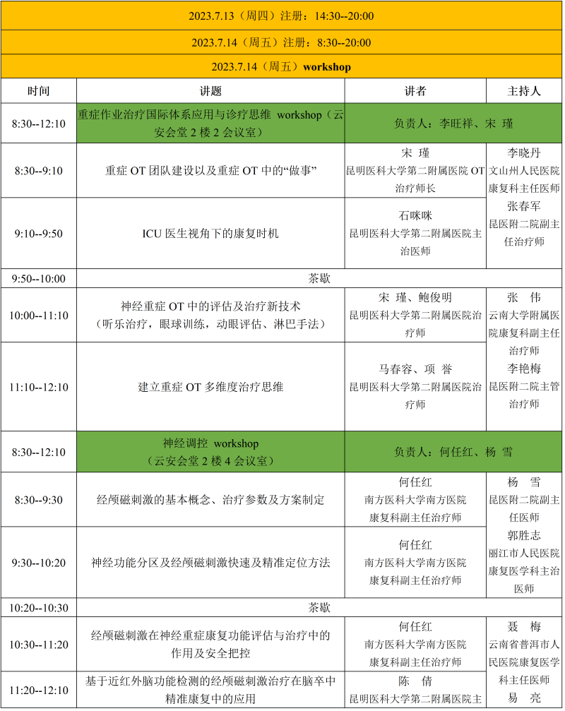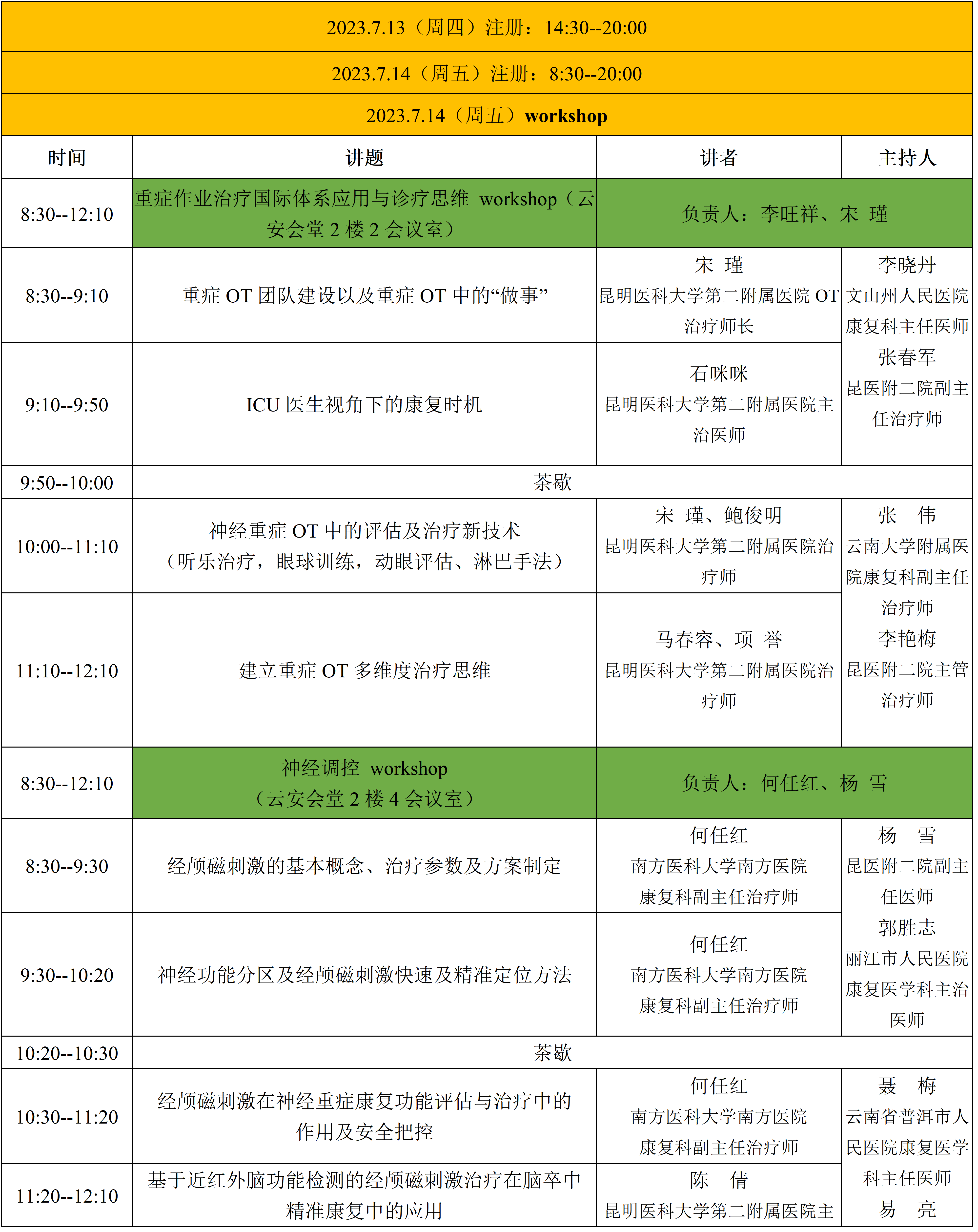 1.Workshop:包括重症作业治疗国际体系应用与诊疗思维、神经调控、重症物理因子治疗、重症超声等Workshop;