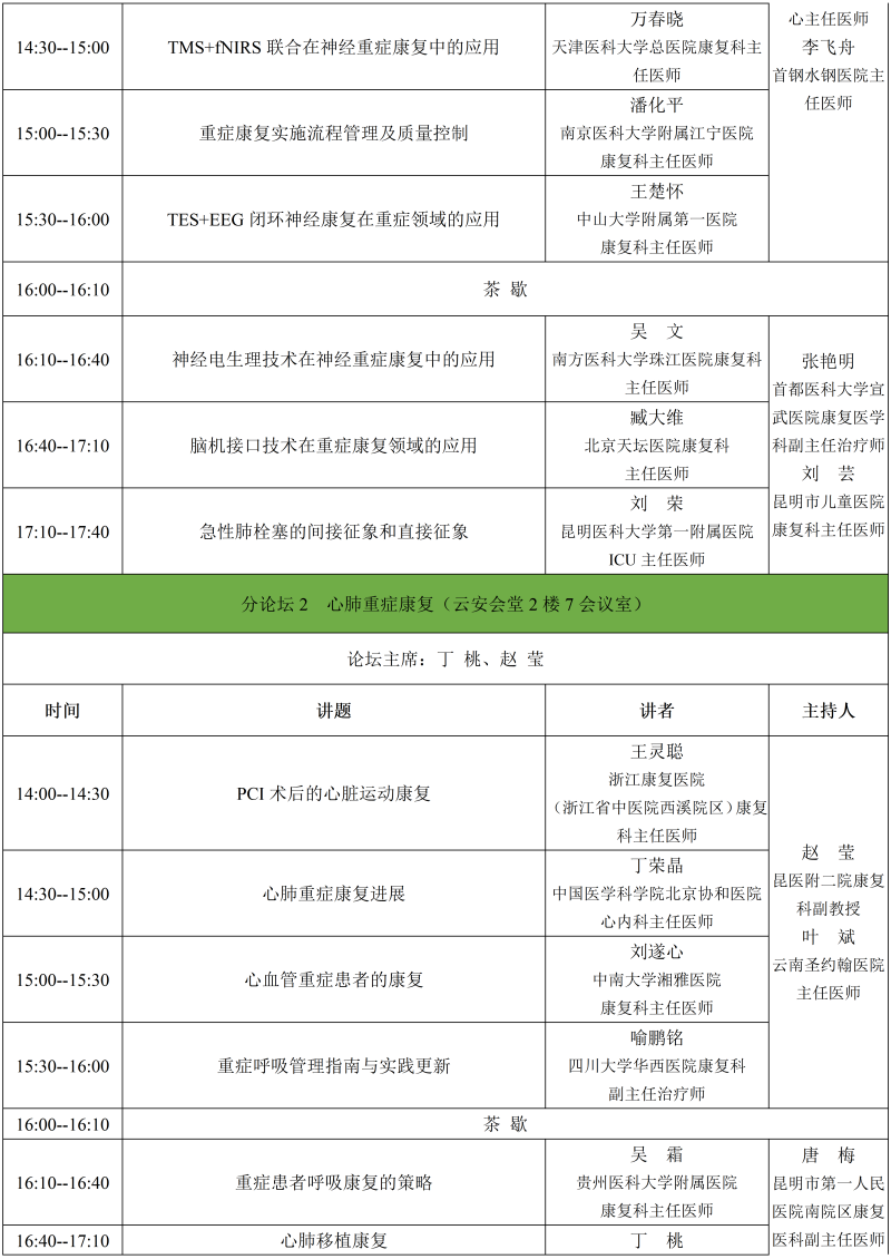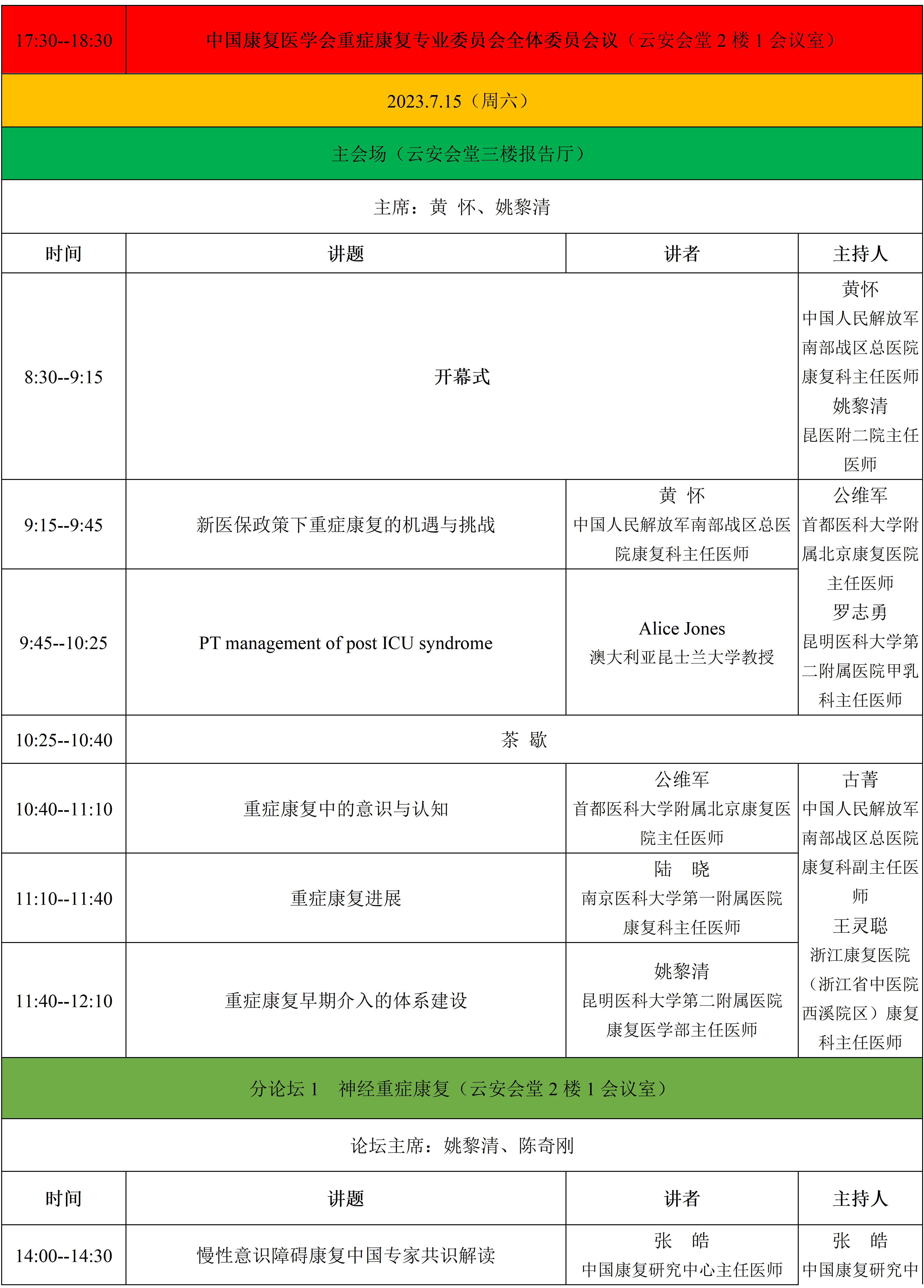 2.主会场:新医保政策下重症康复的机遇与挑战、PT management of post ICU syndrome等。