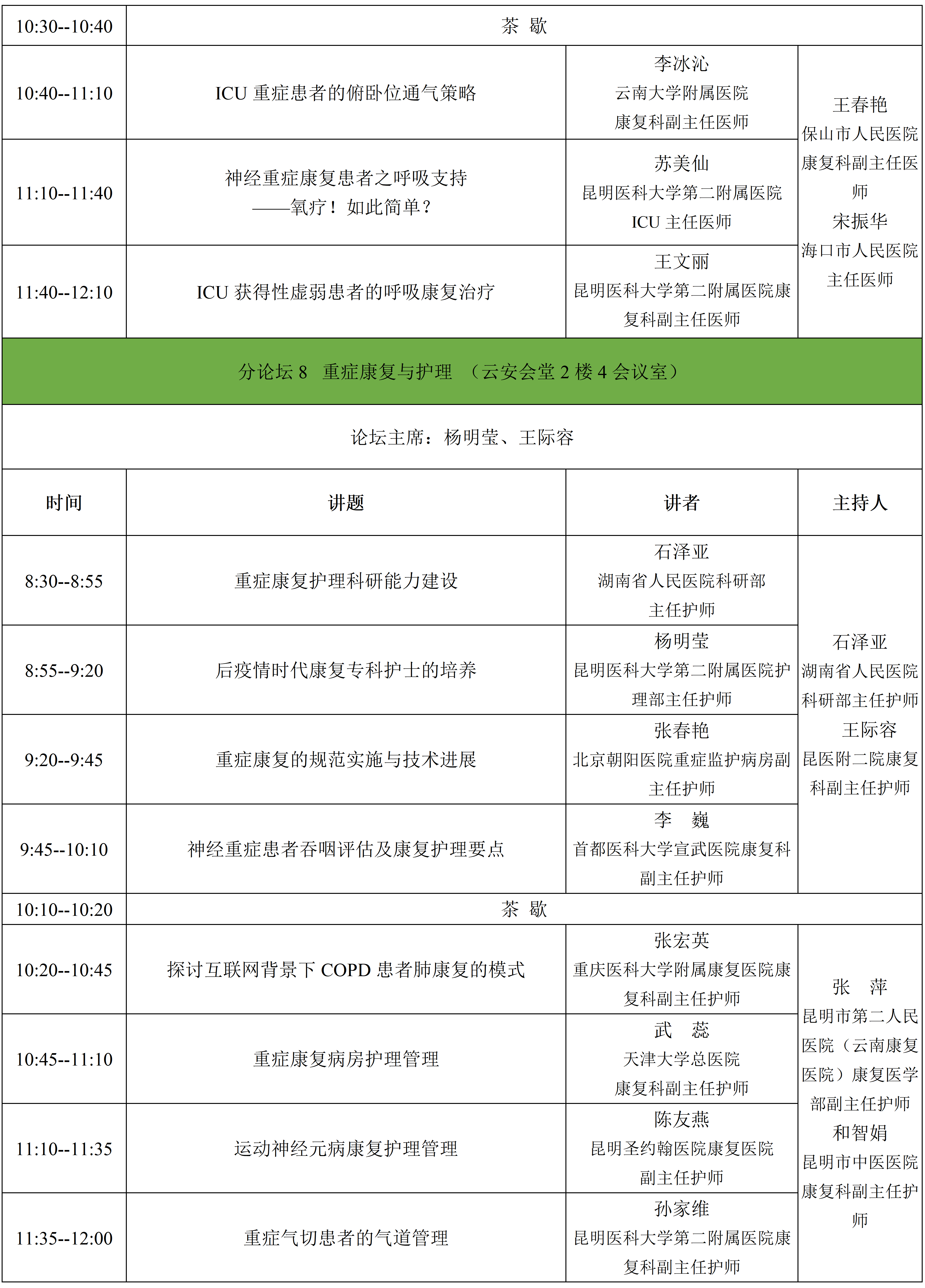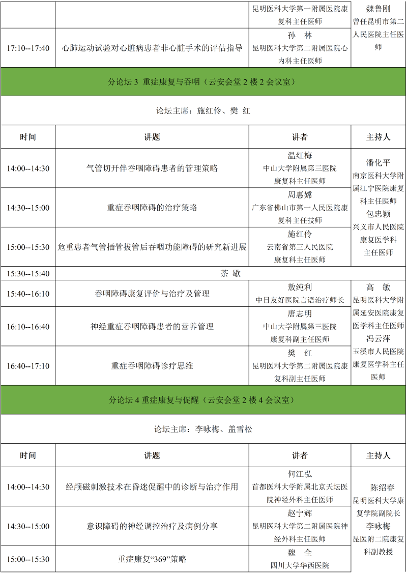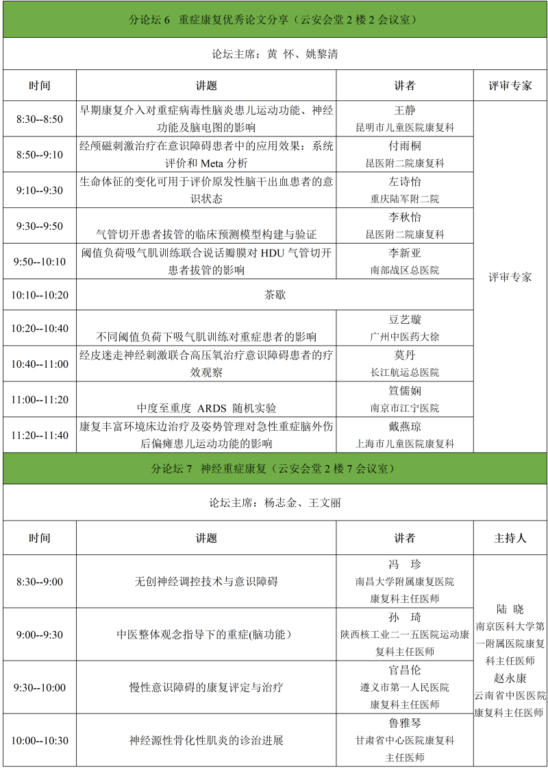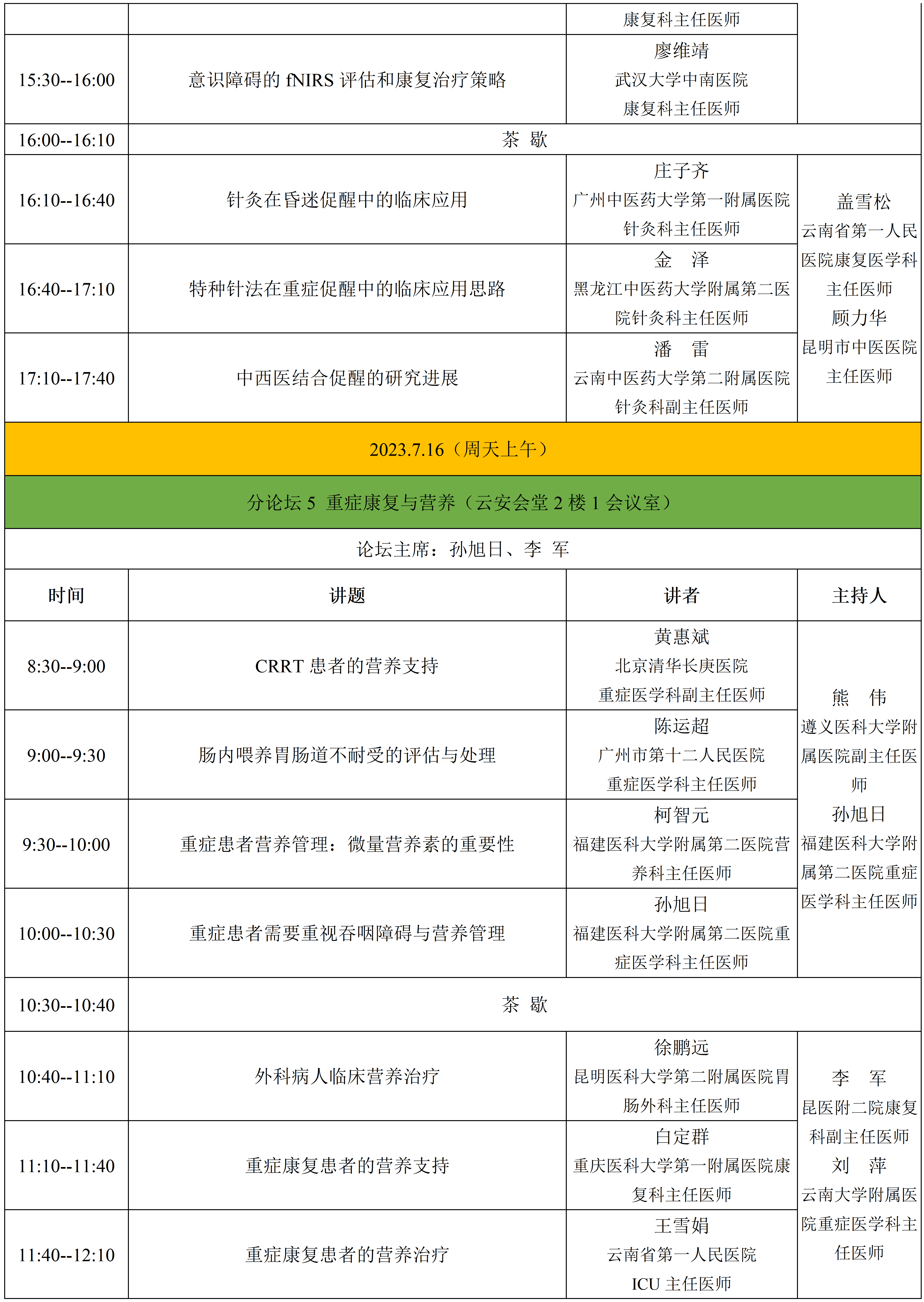 3.分论坛:包括神经重症康复、心肺重症康复、重症康复与吞咽、重症康复与促醒、重症康复与营养、重症康复论文分享、重症康复与护理等分论坛。
