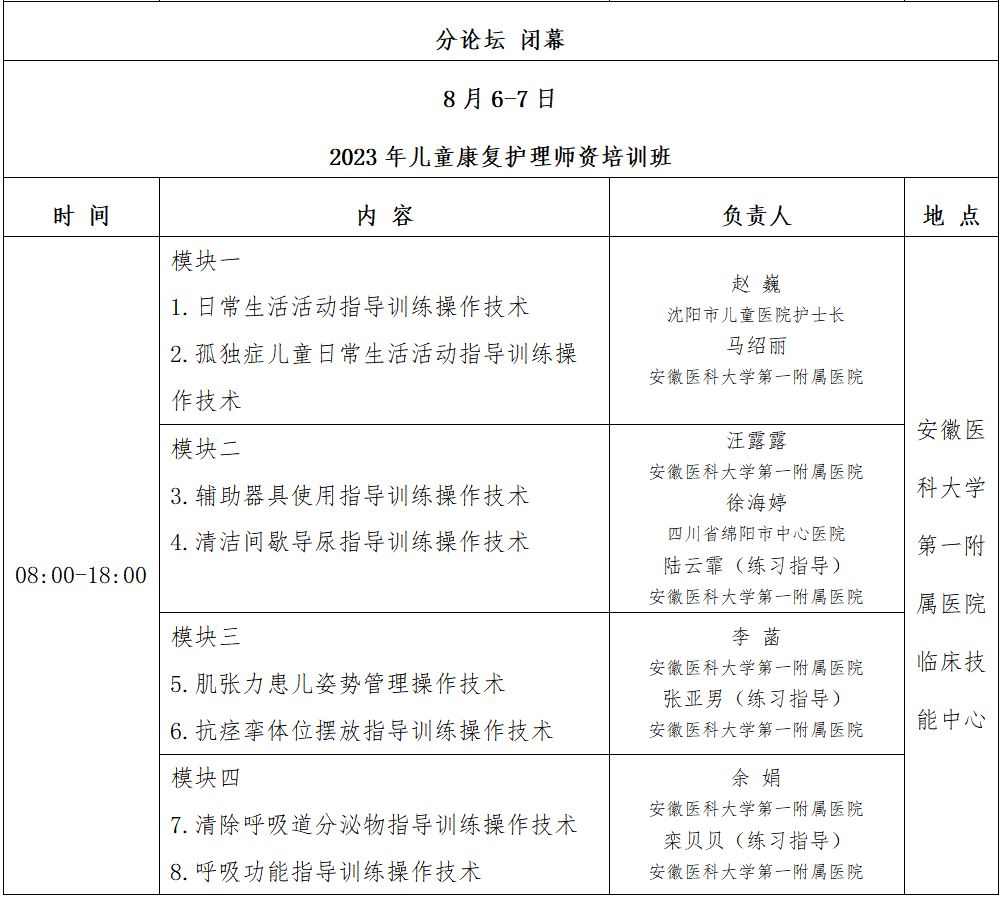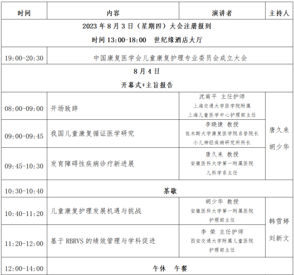中国康复医学会儿童康复护理专业委员会成立大会暨第一届学术年会暨2023年儿童康复护理师资培训班议程