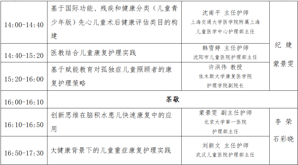 2.儿科(包括新生儿科、儿童保健科、儿童重症医学科、小儿内科、小儿外科、儿童康复科等)、康复医学科、民营康复医院等相关专业的护理人员、儿童保健人员、儿童康复治疗师、康复护士及各康复机构的同仁们参加;