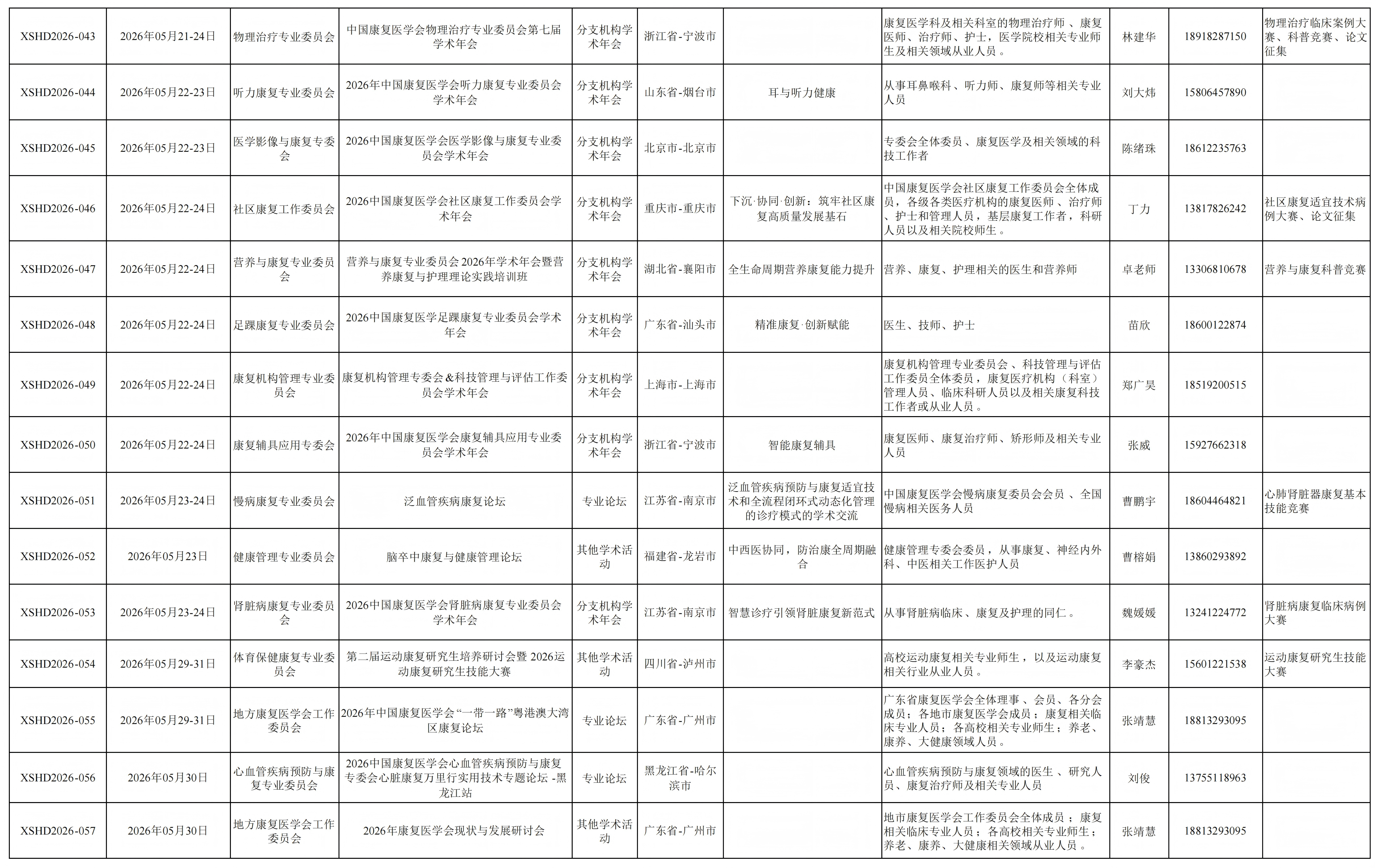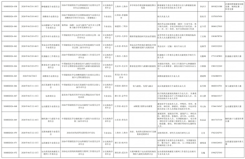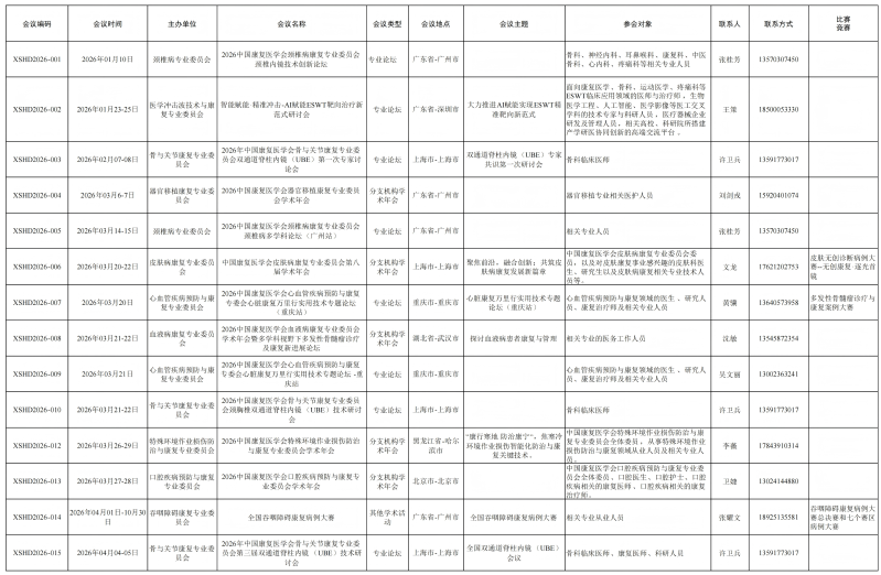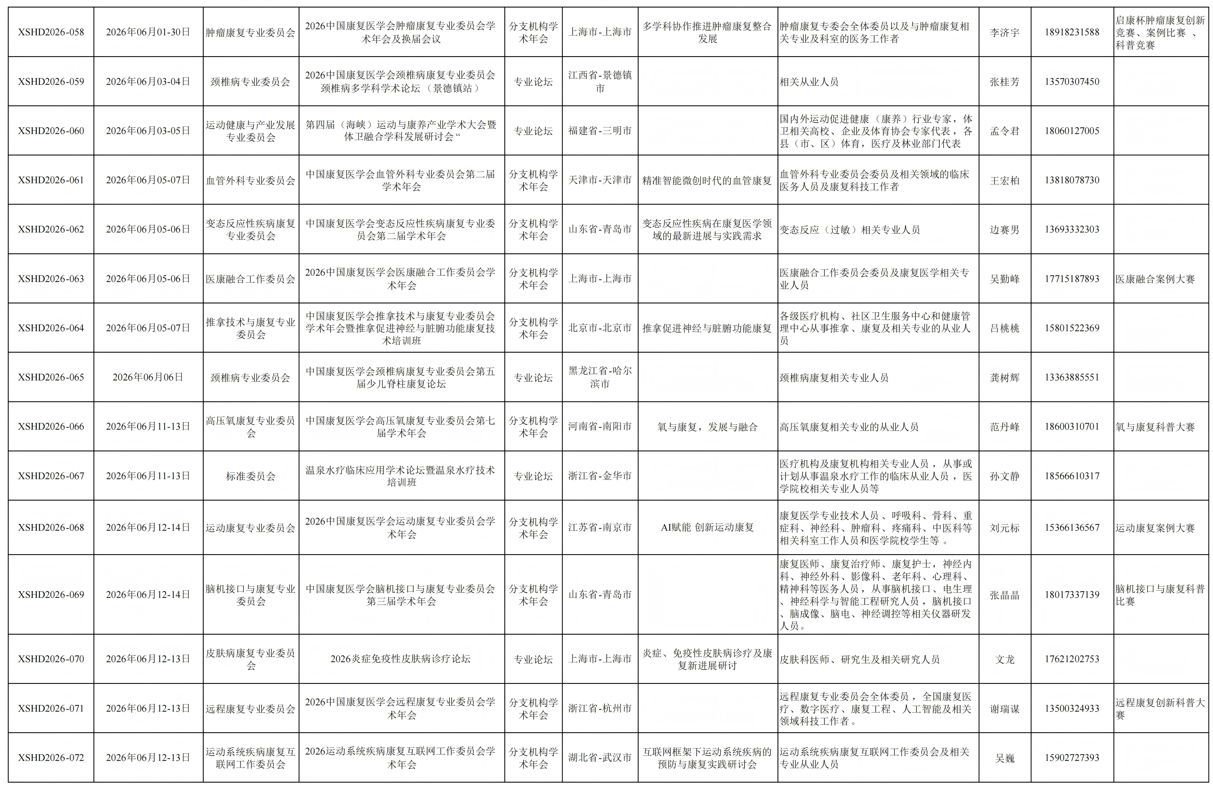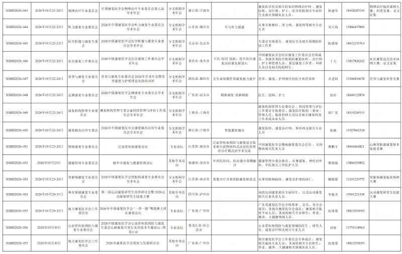 现将“中国康复医学会2026年度学术活动计划”下达你们,请认真执行,有关事项明确如下: