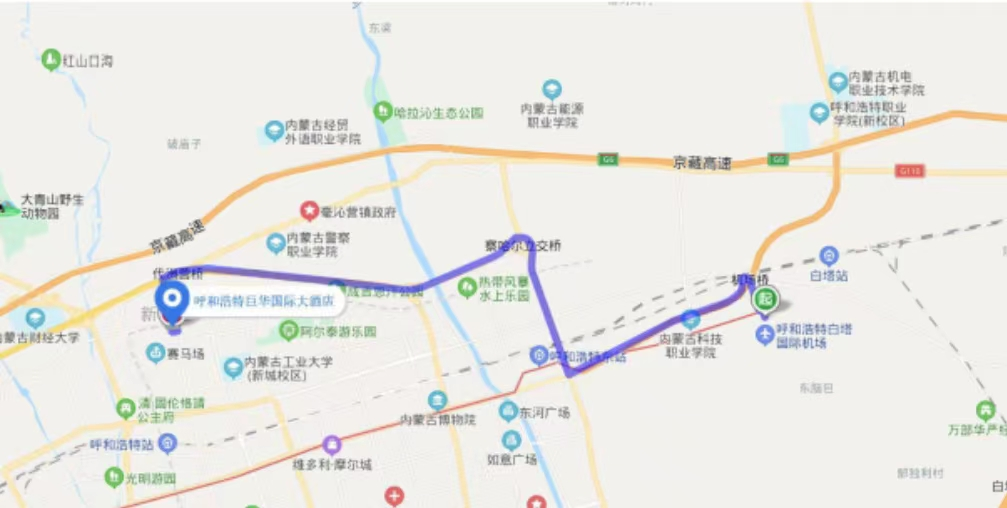 1. 呼和浩特白塔机场→巨华国际大酒店