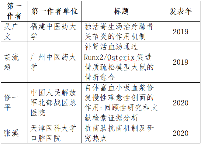 在发布的“2021 年中国百篇最具影响国内学术论文”,《中国组织工程研究》入选1篇: