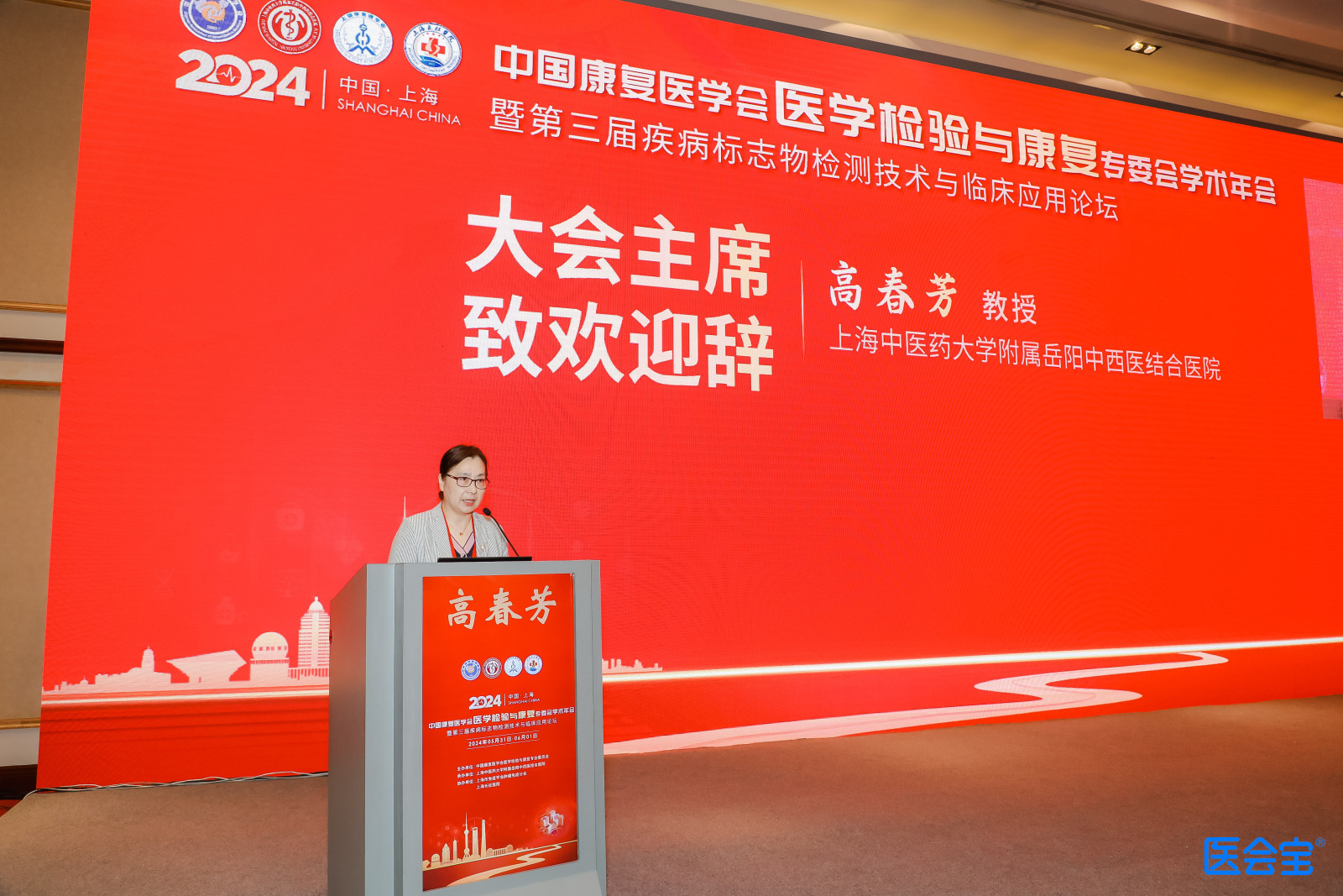 中国康复医学会医学检验与康复专业委员会主任委员、上海中医药大学附属岳阳中西医结合医院高春芳致欢迎辞