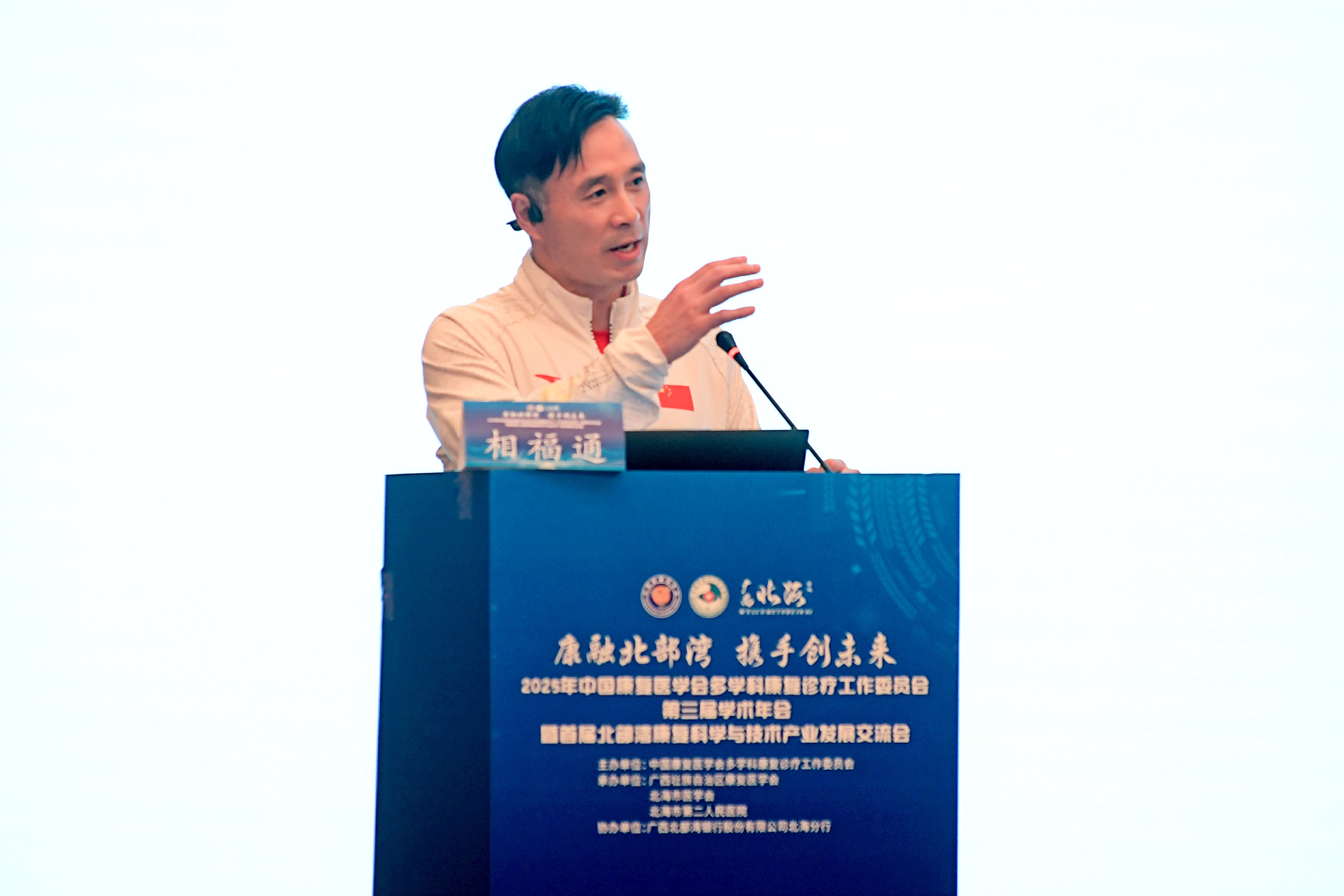 中国康复医学会党委书记、常务副会长兼秘书长彭明强在讲话中指出,人口老龄化与健康事业转型背景下,多学科融合的康复诊疗体系是发展必然趋势,本次大会以“康融北部湾、携手创未来”为主题,聚焦核心议题并贴合区域需求,期望与会者凝聚共识、转化成果,推动我国多学科康复诊疗事业高质量发展;雷陈副市长在致辞中表示,北海市委、市政府高度重视康复医学发展,本次大会将为北海打造文旅康养融合样板城市注入动力,助力前沿技术辐射东盟区域,同时希望当地医疗机构借此学习先进经验,提升服务质量;张通主委介绍了多学科康复诊疗工作委员会成立三年来深耕MDT模式,成效显著,本次会议在延续病例讨论基础上增设互动点评、查房示范环节,并与首届北部湾康复科学与技术产业发展交流会同期举办,汇聚多领域专家分享前沿成果,丰富了会议内涵。