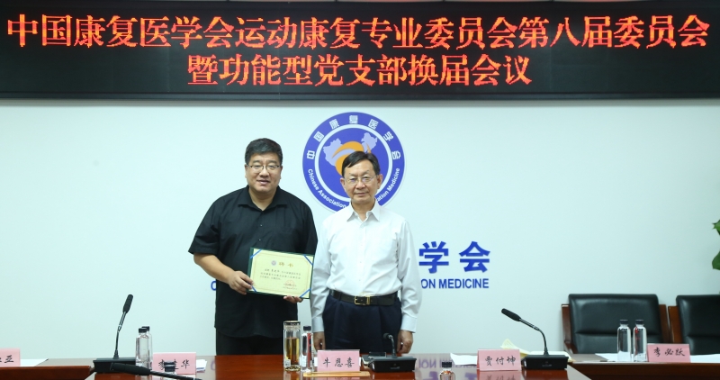 牛恩喜专职副书记为运动康复专业委员会第八届委员会主任委员李建华教授颁发聘书