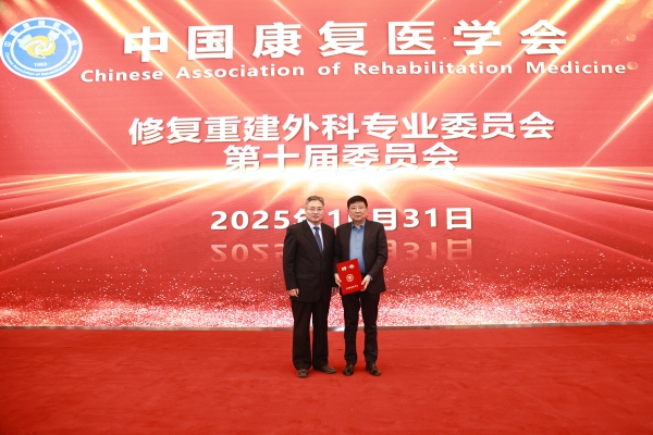 彭明强常务副会长为中国康复医学会修复重建外科专业委员会第十届委员会主任委员章一新教授颁发聘书