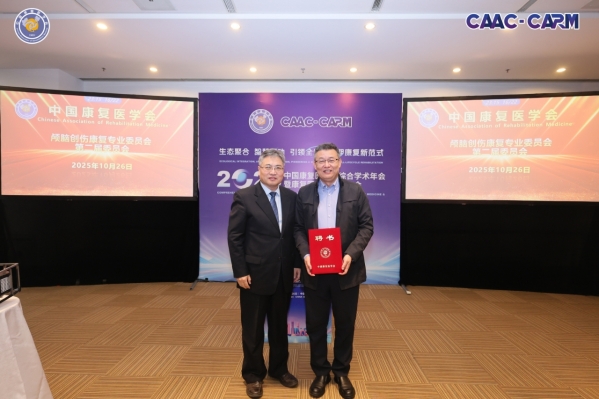 彭明强常务副会长为中国康复医学会颅脑创伤康复专业委员会第二届委员会副主任委员颁发聘书
