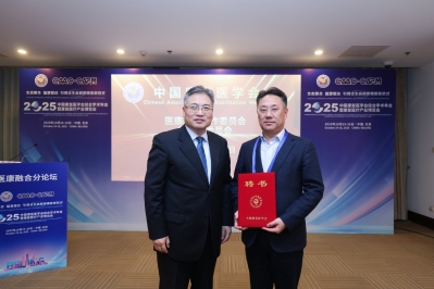 名誉主任委员王杰宁教授和主任委员连斌教授为医康融合工作委员会第二届委员会常务委员颁发聘书