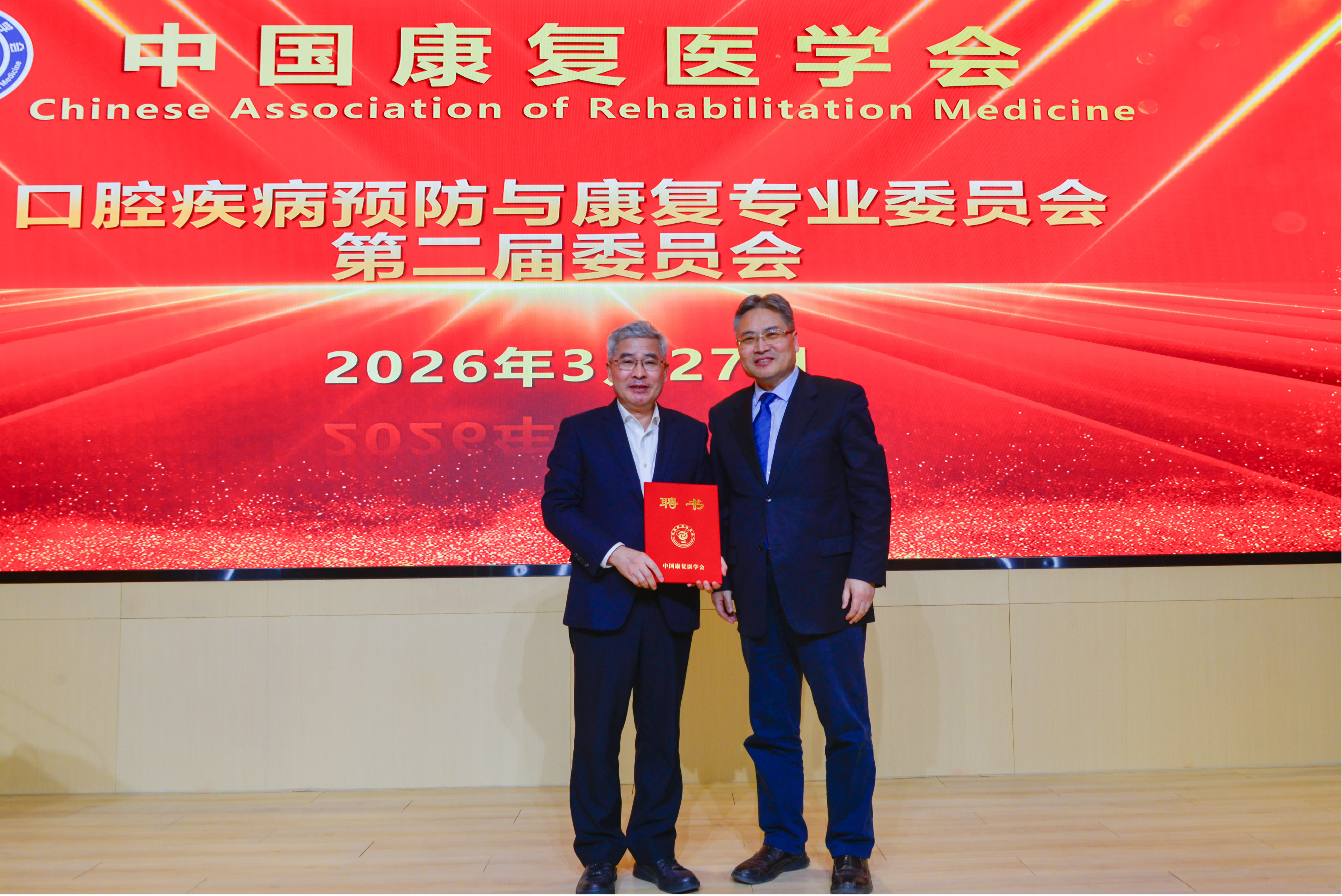 彭明强常务副会长为中国康复医学会口腔疾病预防与康复专业委员会第二届委员会主任委员陈仁吉教授颁发聘书